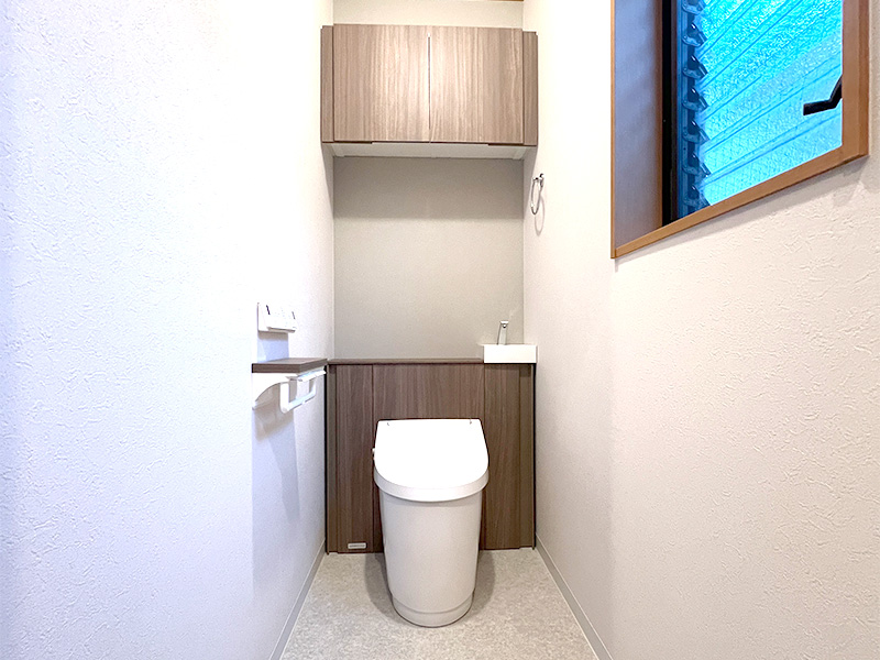 トイレはキャビネット付きにしたことで、収納力が上がり、色味も揃っておしゃれになって良かったです。